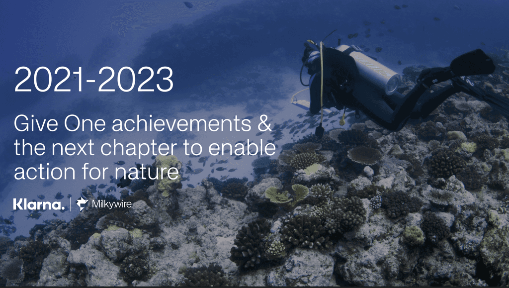 Give One was launched by Klarna in 2021, in partnership with Milkywire, to tackle some of the most critical environmental issues facing our planet. A call to action that set out to address the global funding gap for the interconnected crises of climate change, biodiversity loss, and human development, at a time when nature-based solutions received only around 3% of the financing they required.
